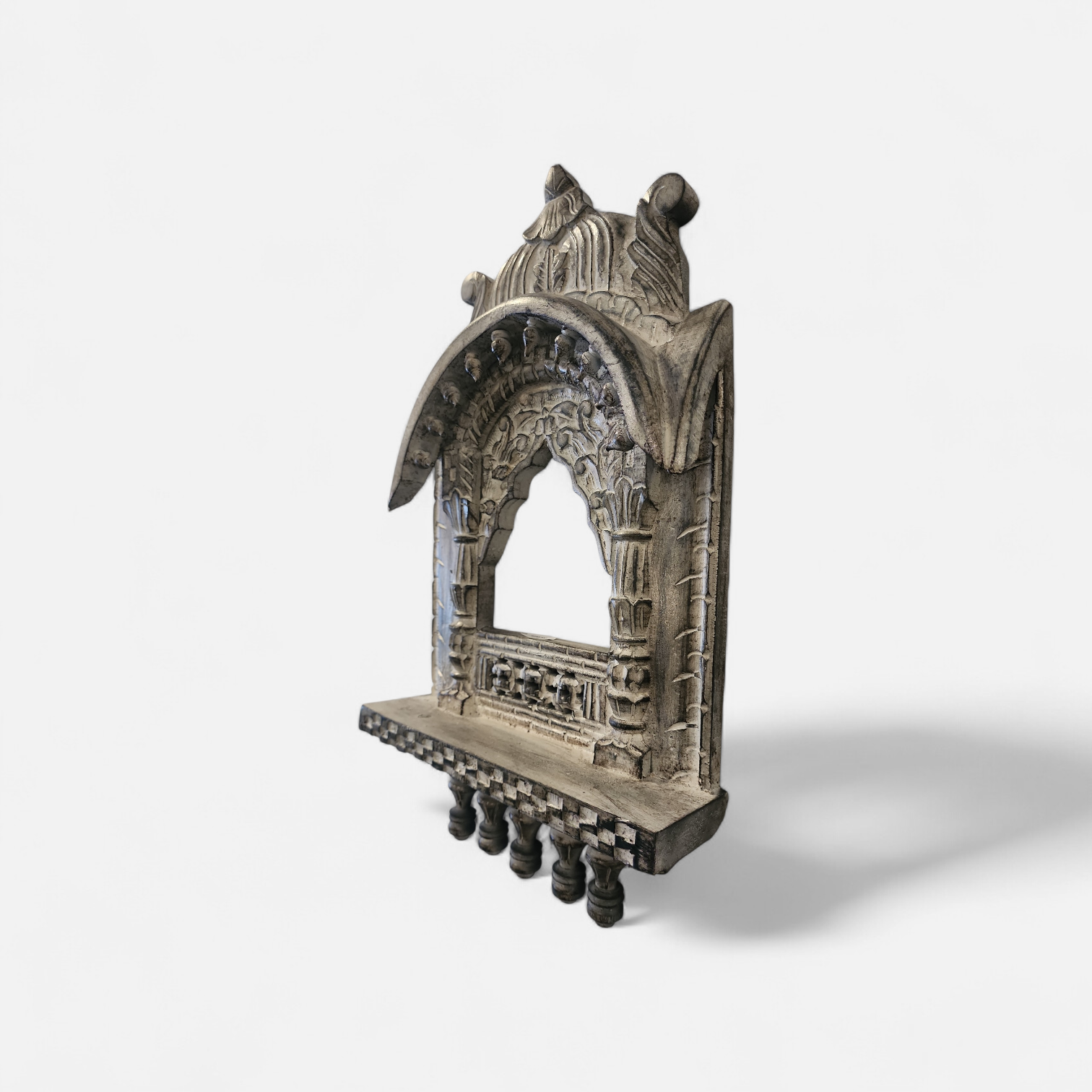 Inspired by the architectural beauty of traditional Indian temples and palaces, this handcrafted wall frame features an intricately carved jharokha-style arch that evokes timeless heritage charm. The ornate pillars, detailed archway, and delicate carvings reflect classical Indian craftsmanship, making it a striking decorative piece for any space.